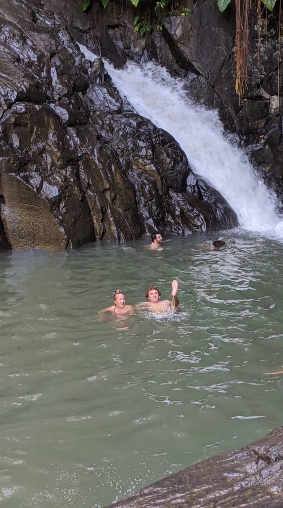 When we weren’t diving, we hired a car, and went to see the many beautiful sights on the island of Guadeloupe. We visited the waterfalls at Carbet, swam in the very cold pool at the bottom of Saut D’Acomat falls, and found the hot springs at Bouillante, where the islands geothermal plant spills the natural hot water into the bay. Another reason we enjoyed our time in Deshaies so much was that we were in great company – several other boats we’d met along the way were also there, so we spent plenty of time socialising, and enjoyed some excellent pizza during our stay!