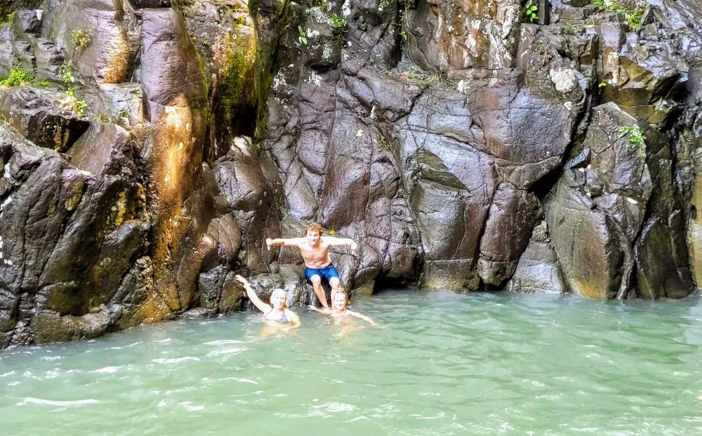 Deshaies was a great spot, and is well known as the setting for the BBC TV series Death in Paradise. They have a number of free mooring balls, so we managed to find one close to shore, and settled in for a few days. We had decided to sign up to complete our Open Water PADI scuba dive course, so for the next week or so, we alternated our days between diving, and exploring Guadeloupe. Our dive course was done over three mornings with the wonderful Eric from Sub tropical Diving, with 2 dives each morning, every second day. We were treated to an outstanding array of marine wildlife, and each dive we saw something new – we were totally hooked!