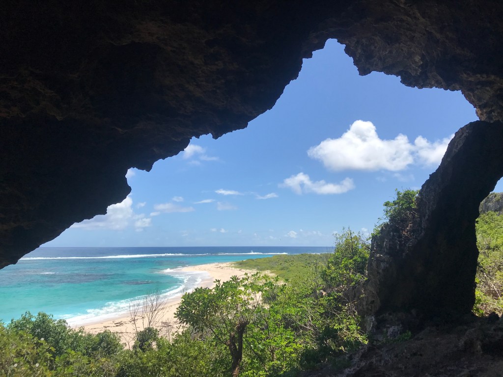We had a very leisurely time in Barbuda, and the first couple of days were spent reading, walking for miles on the gorgeous beach, and swimming in the bluest water we’ve see in the Caribbean! We helped friends to recover their anchor after the chain broke a few days previously, and caught up with a few small admin tasks. We also booked a tour to the other end of the island to climb the caves at Two Foot bay, and to visit the Frigate Bird Colony. Our guide Chris showed us around the island – Barbuda was hit very hard by Hurricane Irma in 2017, and is still recovering. The tiny island is very flat, so what ever wasn’t damaged by the high winds was inevitably destroyed by the storm surge that followed. The short hike up to the caves was excellent, we started on the white sand beach, and climbed up through the cave, eventually emerging on the top of the small cliffs, know as the “highlands”. The views across the Atlantic coast were great, and we took lots of excellent photos!